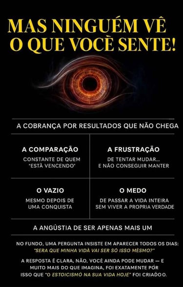 "Desperte a força interior que já existe em você. Descubra como os princípios do estoicismo podem transformar sua mente, aumentar sua disciplina e elevar sua capacidade de enfrentar qualquer desafio com clareza, coragem e propósito.
