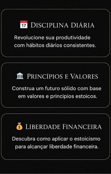 Todo o material foi criado para ser direto, simples e fácil de aplicar — mesmo para quem nunca estudou estoicismo antes.