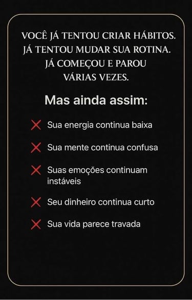 No fundo, você sabe que tem força. Sabe que pode mais. Mas, no ritmo acelerado do dia a dia, tudo acontece ao mesmo tempo — e a mente fica pesada, apertada, cansada. 😓